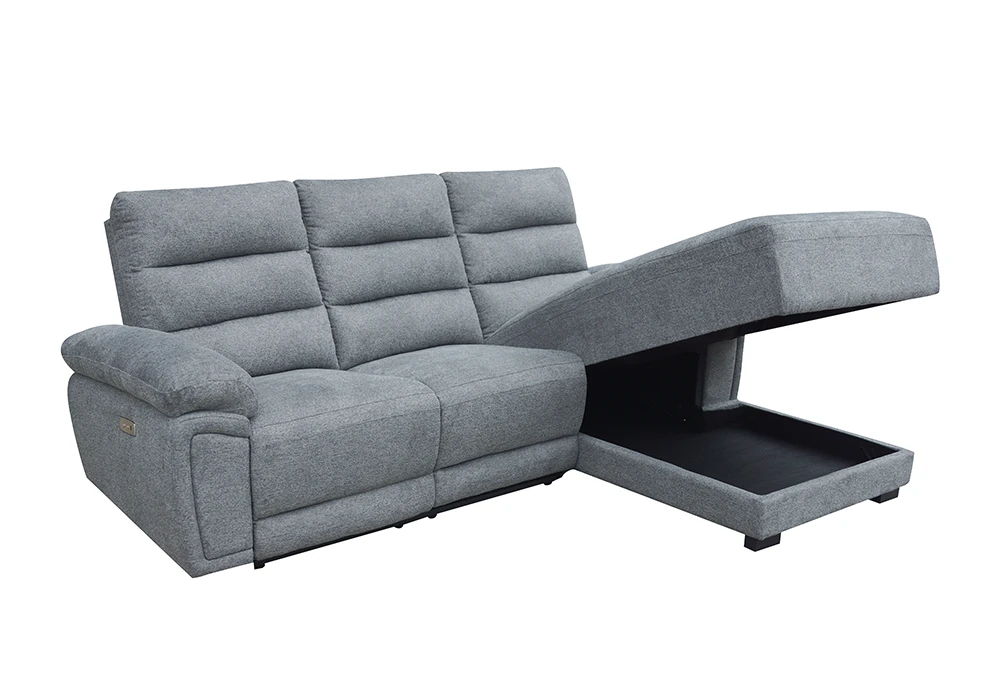 Profitez d’une relax électrique multi-positions pour un confort personnalisé. La méridienne est dotée d’un coffre de rangement spacieux, offrant une solution idéale pour ranger vos plaids, coussins ou autres accessoires, tout en optimisant l’espace de votre salon.