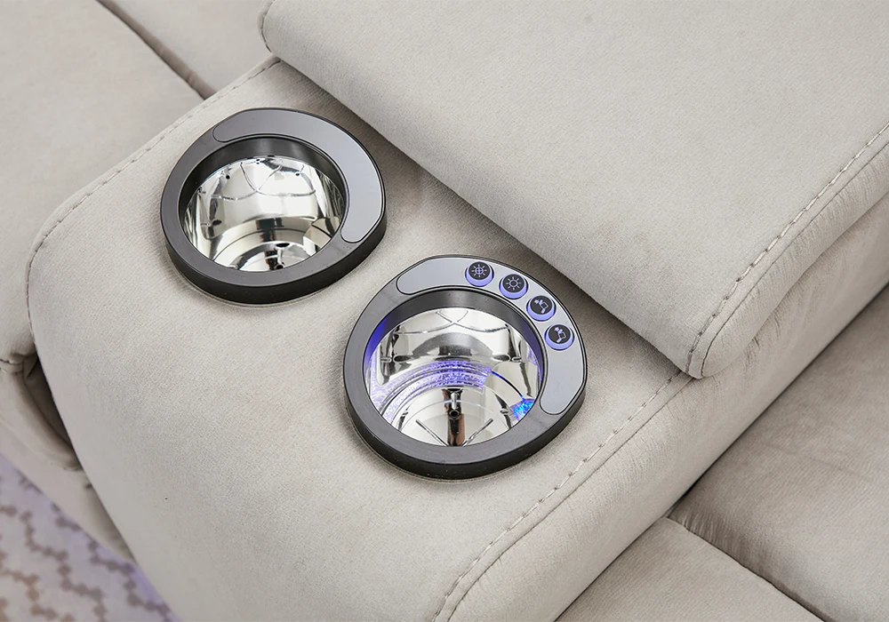 Pratique et fonctionnel, il est équipé de deux consoles centrales intégrant des porte-gobelets et des coffres de rangement, parfaits pour garder télécommandes, livres et accessoires à portée de main. Son tissu microfibre épais, doux et résistant, se distingue par son entretien facile, tandis que l’éclairage LED intégré apporte une touche moderne et élégante, créant une ambiance cosy dans votre salon.