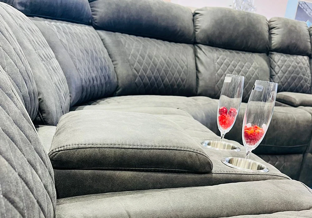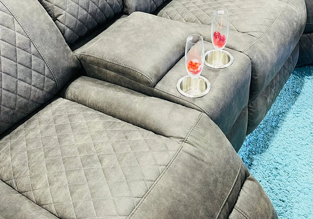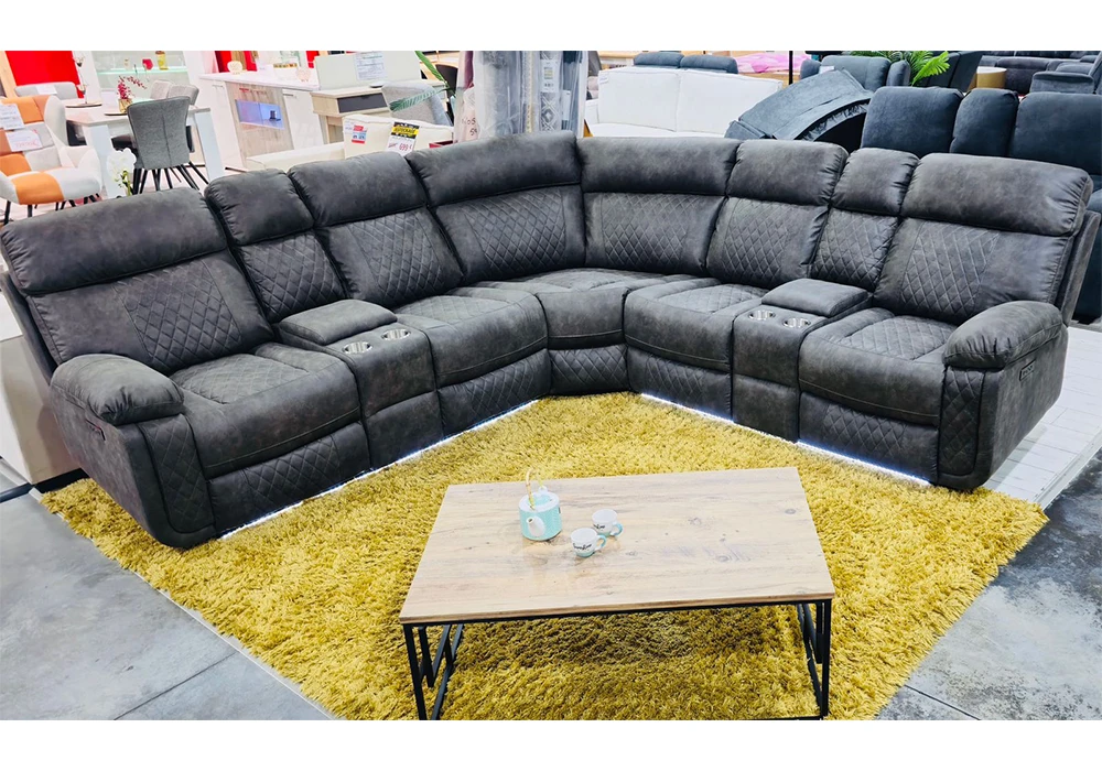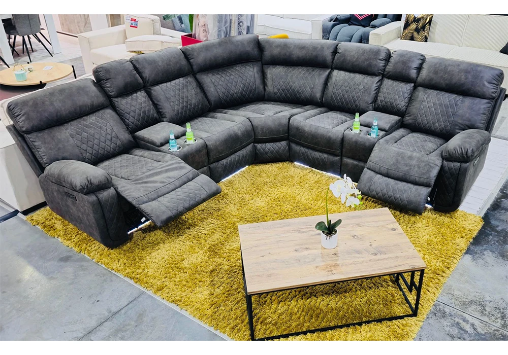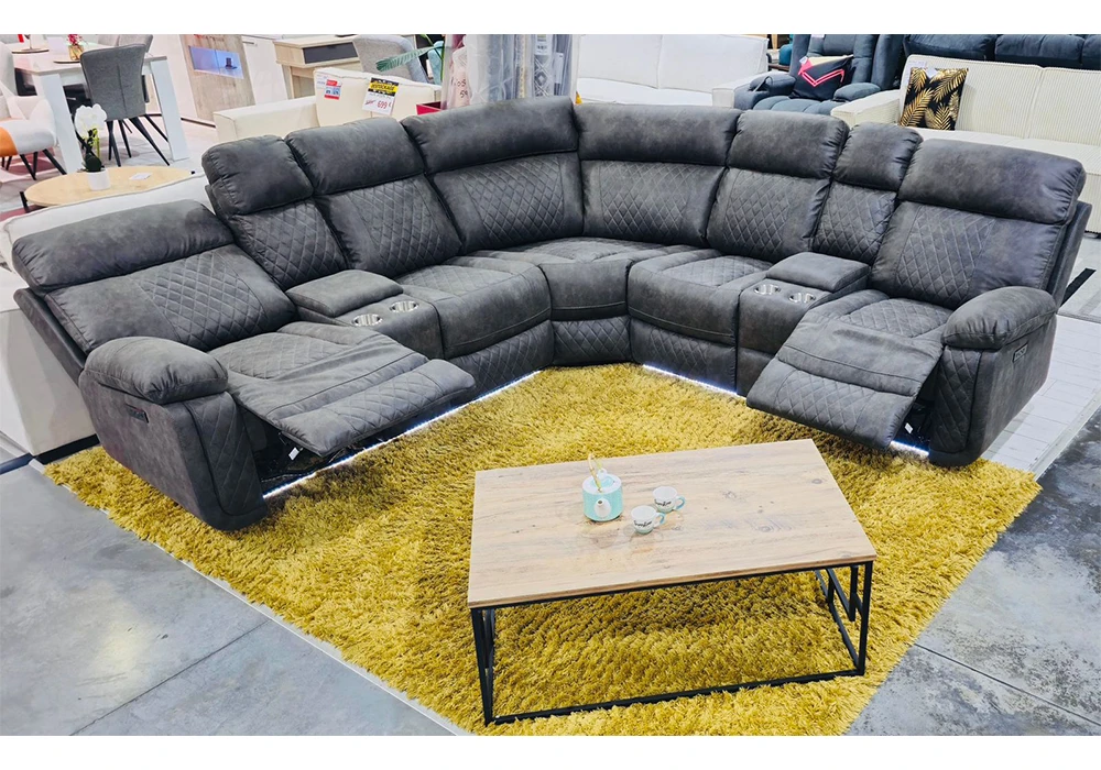 Le revêtement en mousse polyuréthane et tissu microfibre de catégorie A coloris gris titanium offre un confort exceptionnel et une douceur inégalée. Profitez de ses 2 relax électriques multi positions dotés de LED pour un maximum de relaxation. Les 2 consoles gobelets avec LED et le coffre de rangement ajoutent à la praticité de ce meuble haut de gamme.