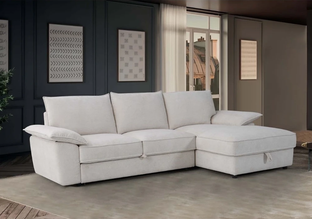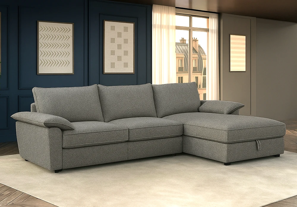 Ce salon d’angle est convertible en lit, avec une réversibilité gauche ou droite selon vos besoins, ce qui en fait une solution idéale pour les petits espaces ou pour recevoir des invités.