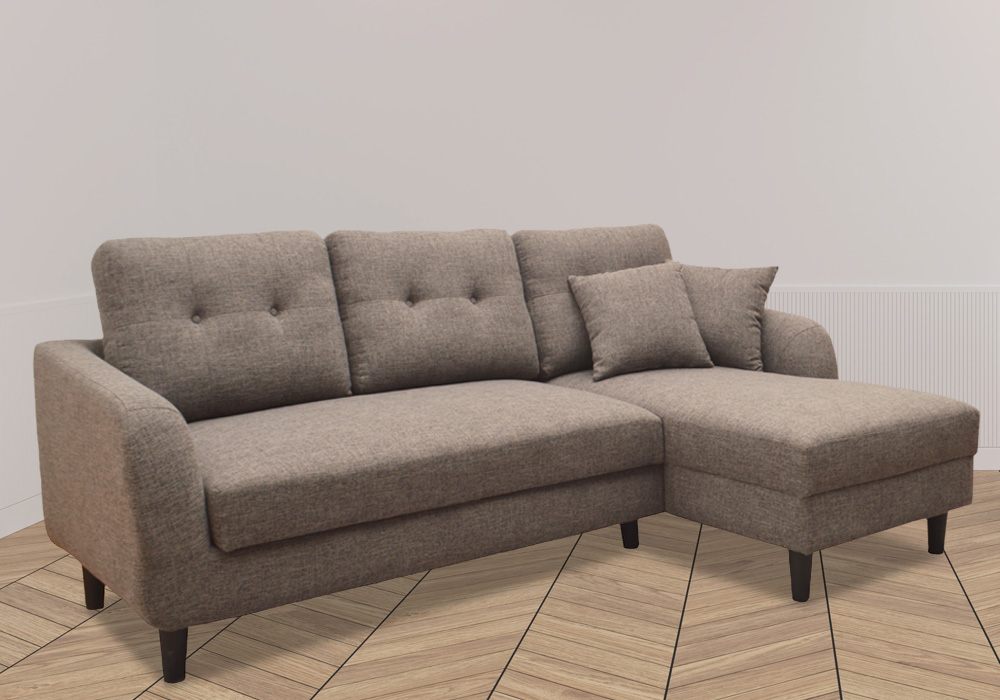 Ce salon d’angle convertible en lit s’agence aussi bien dans un intérieur lumineux que dans un séjour plus sombre. Son tissu gris habille la structure et apporte une touche apaisante au modèle. Assises rembourrées de mousse pour un confort optimal.