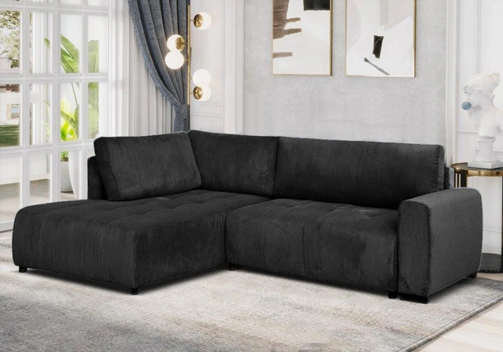 Élevez le style de votre salon avec notre salon d’angle convertible moderne noir. Conçu pour allier élégance et fonctionnalité, ce meuble est doté d’une structure robuste en panneau de particules. L’assise, en mousse de polyuréthane, est recouverte d’un tissu microfibre côtelé de coloris noir, offrant un confort exceptionnel et une esthétique raffinée.