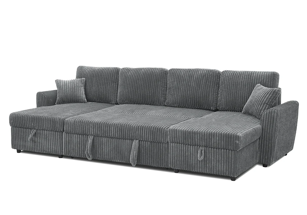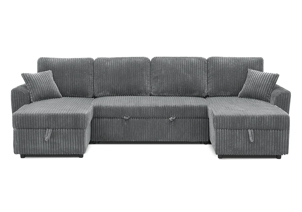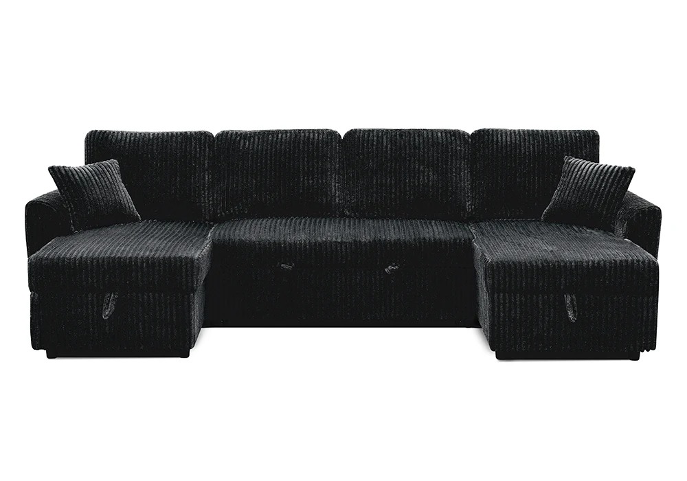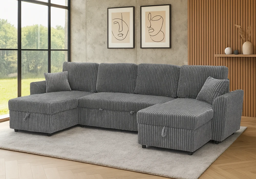 Ce canapé panoramique convertible en lit se transforme en un espace nuit confortable, idéal pour recevoir famille ou invités. Il est équipé de deux méridiennes avec coffre de rangement, parfaites pour dissimuler plaids, coussins ou objets du quotidien tout en conservant une ligne épurée. Livré avec 2 coussins assortis, le Majestic allie fonctionnalité, élégance et générosité des volumes.