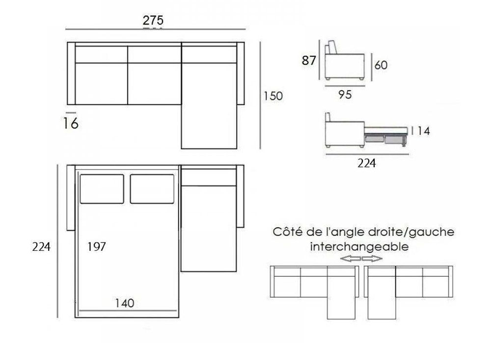 Ce canapé d’angle présente des atouts non négligeable : une méridienne avec coffre de rangement sous l’assise qui complétera à merveille votre canapé et ajoutera un élément supplémentaire dans votre salon. Le coffre de rangement dispose d’une belle capacité où vous pourrez stocker vos coussins et plaids par exemple et les garder accessibles facilement.