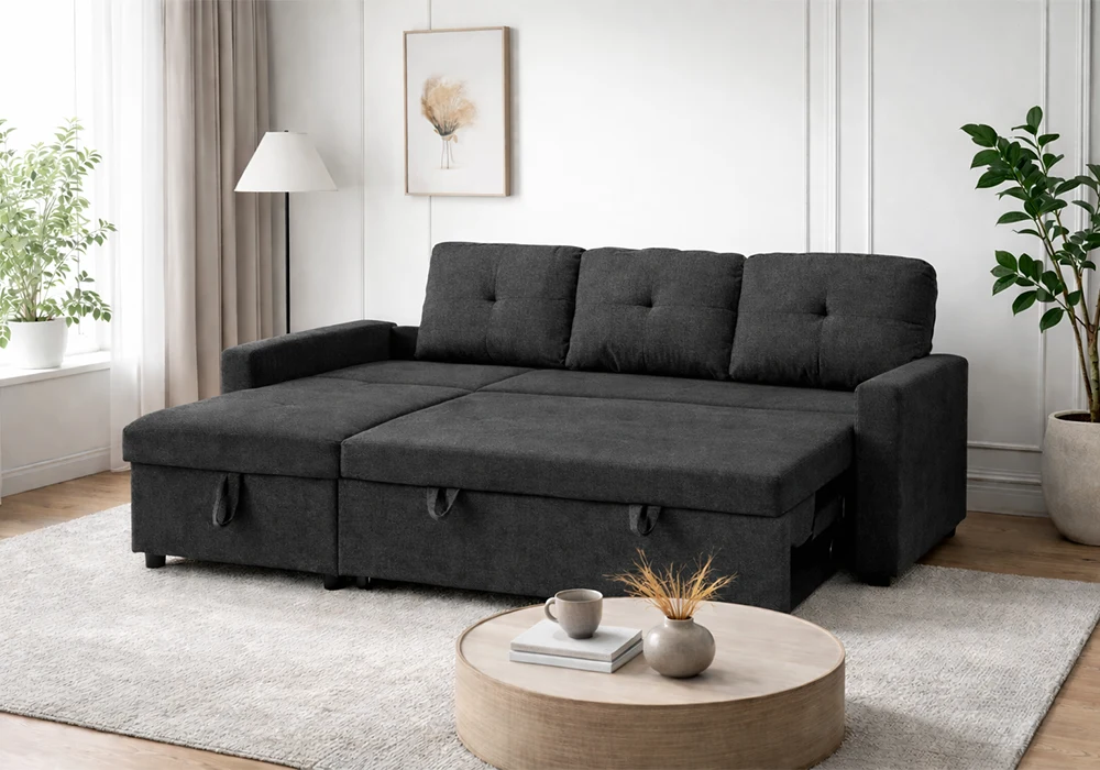 Ce modèle se convertit facilement en lit, permettant d’accueillir vos invités sans encombrer l’espace. Il dispose également d’un grand coffre de rangement pour optimiser l’organisation de votre salon et garder vos affaires à portée de main. La réversibilité droite/gauche offre une grande flexibilité d’aménagement selon votre pièce, et il est livré avec deux coussins pour un confort et une esthétique supplémentaires.