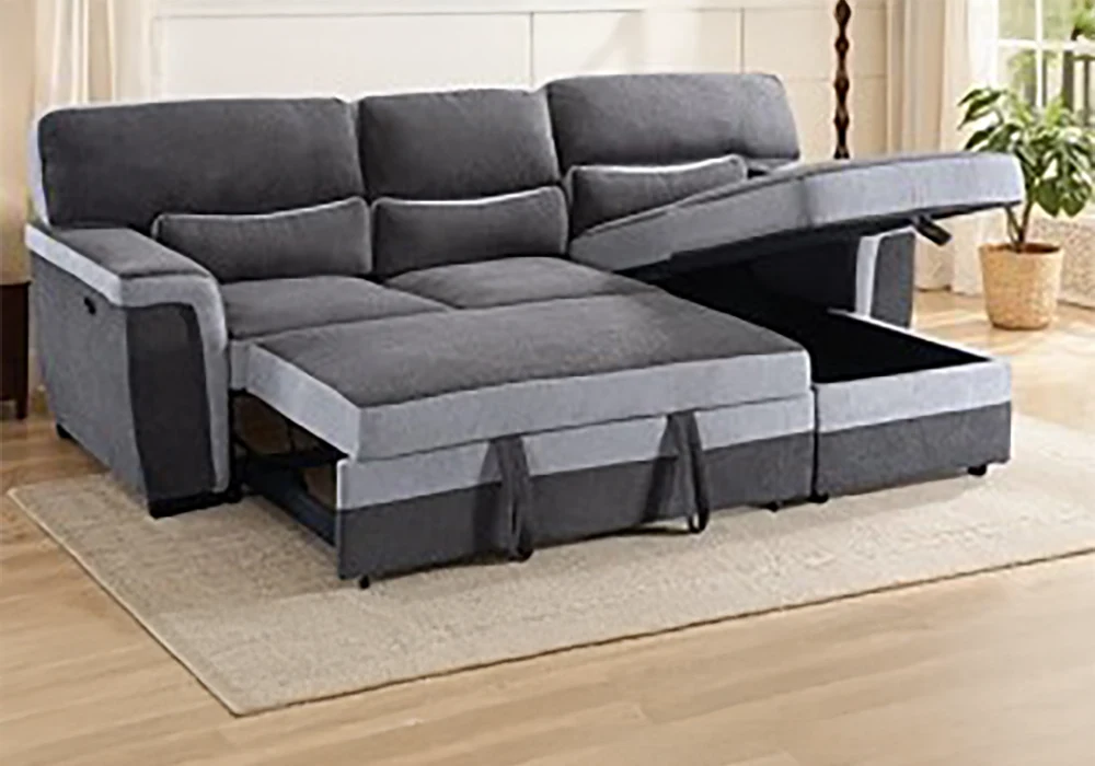 Le salon ELSA se convertit en lit en quelques secondes, offrant un couchage d’appoint idéal pour accueillir vos proches. Il est également équipé d’un coffre de rangement intégré sous la méridienne, parfait pour ranger plaids, oreillers ou accessoires du quotidien.