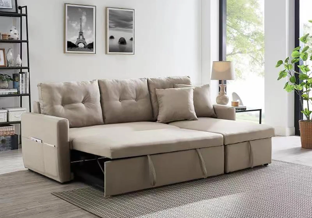 Canapé convertible en microfibre beige – Fonctionnalité et confort au quotidien