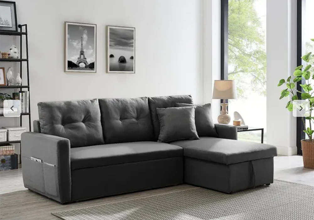 Ce salon d’angle est convertible en lit, avec une réversibilité gauche ou droite selon vos besoins, ce qui en fait une solution idéale pour les petits espaces ou pour recevoir des invités.