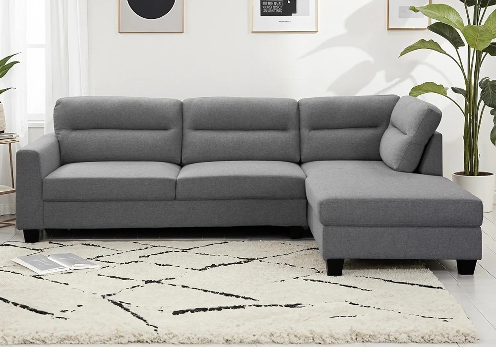 Salon d’Angle Gris Clair Bonomy – Élégance moderne et confort durable