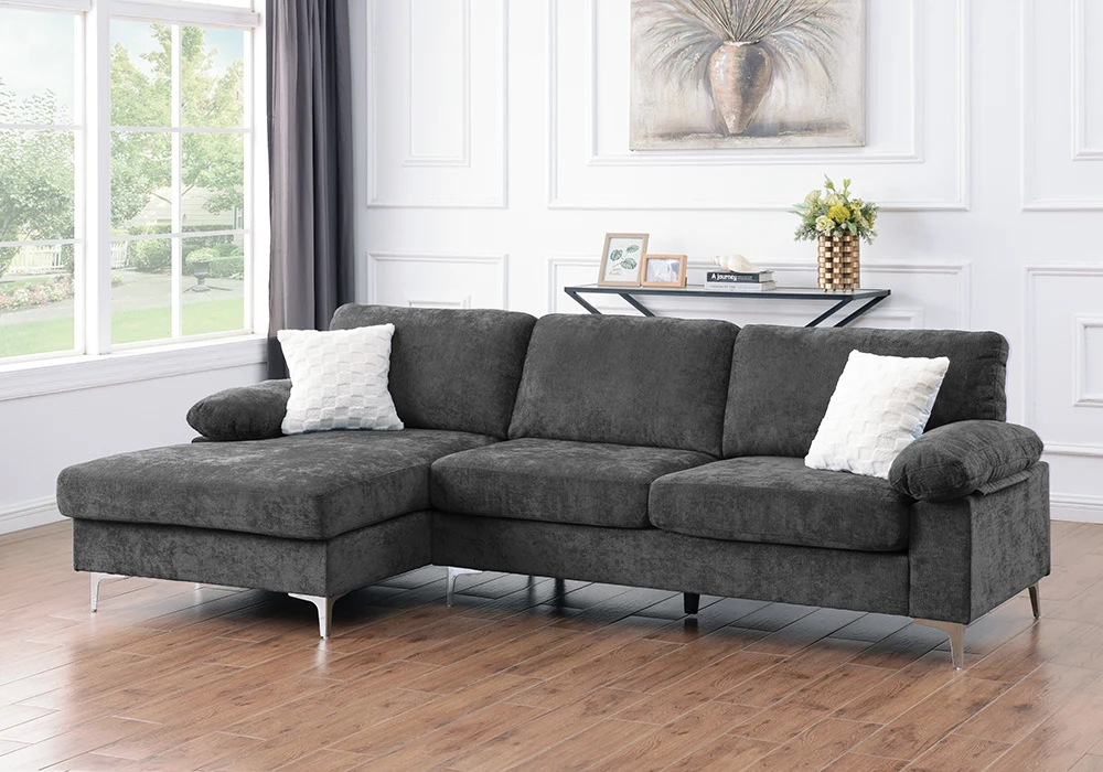 Sa structure en panneau de particules associée à une assise en mousse polyuréthane offre un excellent maintien et un confort optimal au quotidien. Revêtu d’un tissu microfibre doux et accueillant, disponible en gris foncé ou gris clair, ce canapé garantit une sensation agréable tout en étant résistant et facile d’entretien.