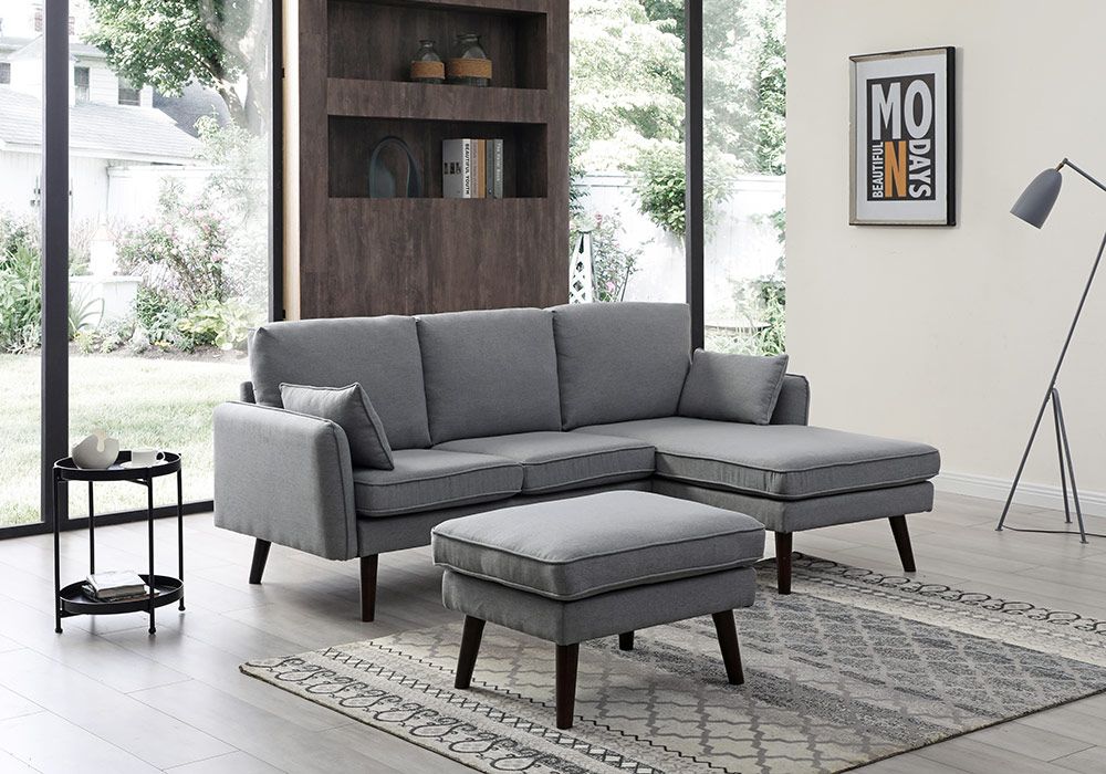 La structure du canapé est fabriquée en panneau de particule et en tissu d’une qualité remarquable. Les pieds stables soulignent le style moderne du canapé.
