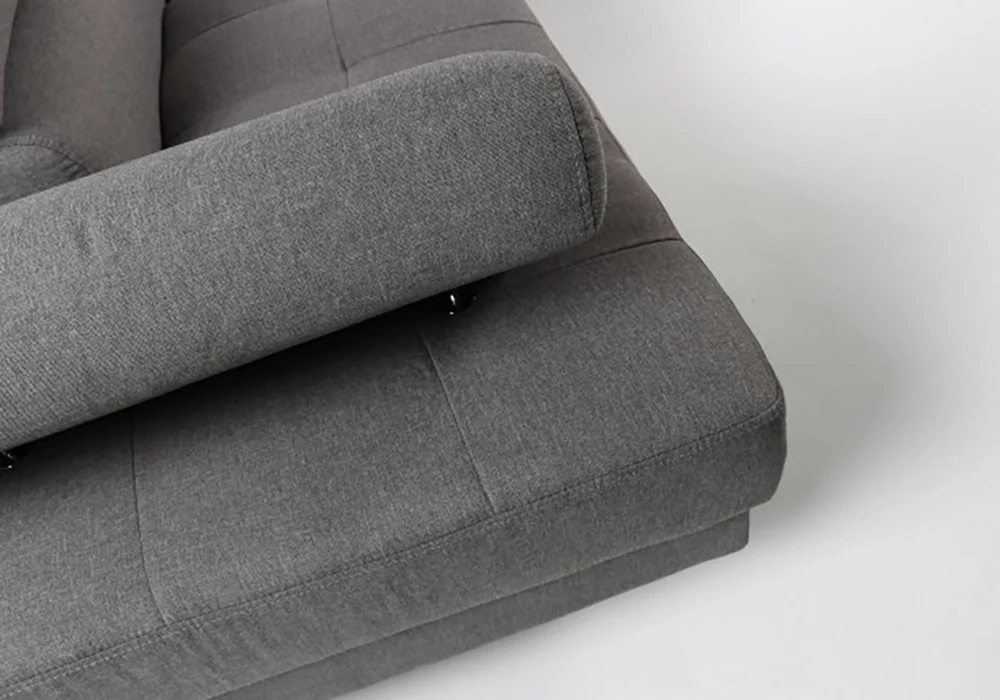 Les assises en mousse polyuréthane sont habillées d’un tissu microfibre gris, à la fois résistant et facile d’entretien. Ce revêtement offre un confort moelleux tout en facilitant le nettoyage, parfait pour les familles comme pour les amateurs de décoration soignée.