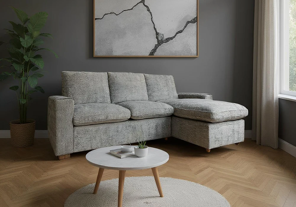 Ce salon d’angle est convertible en lit, avec une réversibilité gauche ou droite selon vos besoins, ce qui en fait une solution idéale pour les petits espaces ou pour recevoir des invités.