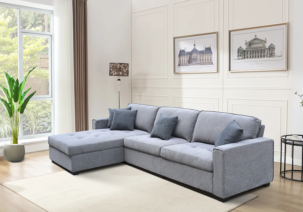Ce superbe canapé d’angle moderne conviendra à tout type d’intérieur. Il se démarque de par ses lignes fluides et son revêtement en tissus microfibre gris. Il offre un haut niveau de confort avec ses assises garnies de mousse. Le canapé d’angle a des sièges épais pour un confort d’assise vraiment très appréciable.