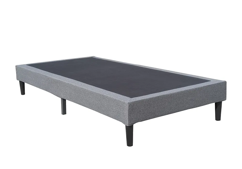 Structure en MDF en Kit, épaisseur de 15cm, 13 lattes recouvertes de tissus gris avec 8 pieds coloris noir.