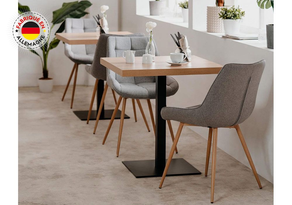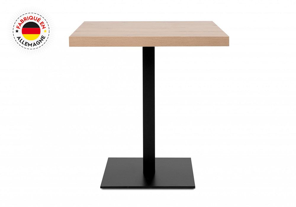 Structure de la table en panneau de particules, coloris chêne artisan, piétement en métal noir.