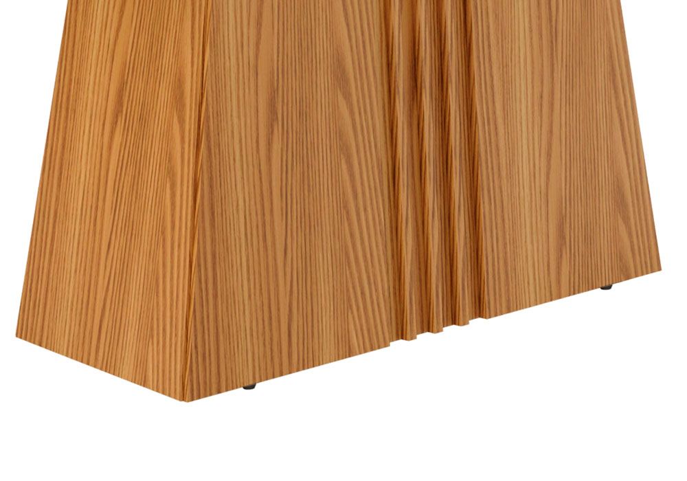 Structure en panneau de particules recouvert de papier couleur beige / noyer clair, plateau en verre.