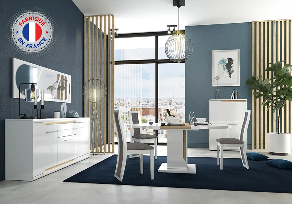 Le piétement très robuste apporte de la stabilité à cette table de repas. Sa fabrication française est l’assurance d’un meuble de salon de qualité, aux finitions soignées.