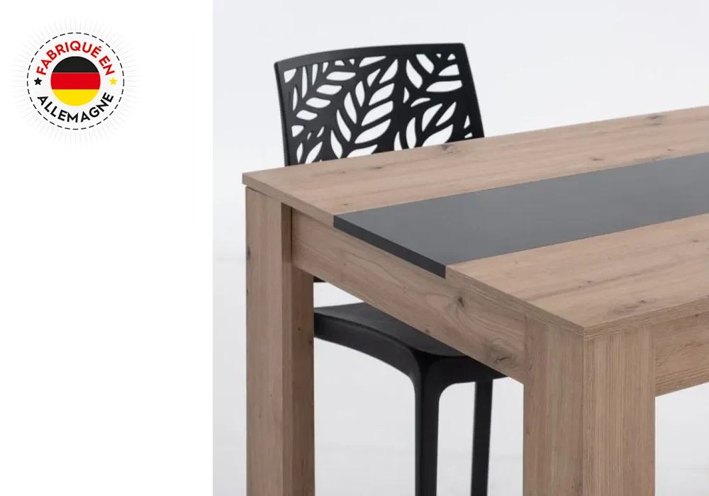 La table à manger Niklas allie style contemporain, robustesse et fonctionnalité, idéale pour créer un espace convivial dans votre salle à manger ou cuisine. Sa structure en panneau de particules et MDF recouverte de papier coloris oak jackson / noir apporte un contraste élégant entre chaleur du bois et modernité du noir, s’intégrant facilement dans tout type d’intérieur.