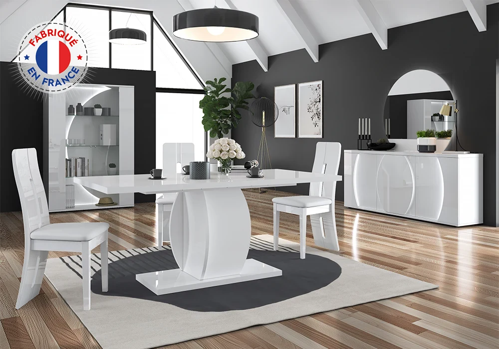 Entièrement revêtue d’une laque blanc brillant, cette table illumine votre intérieur et reflète subtilement la lumière, créant une atmosphère à la fois chaleureuse et sophistiquée. Prévue pour accueillir 6 à 8 personnes, elle se transforme en un clin d’œil grâce à son allonge centrale de 45 cm, permettant de passer de 180 cm à 225 cm de longueur et de recevoir jusqu’à 10 convives avec confort.