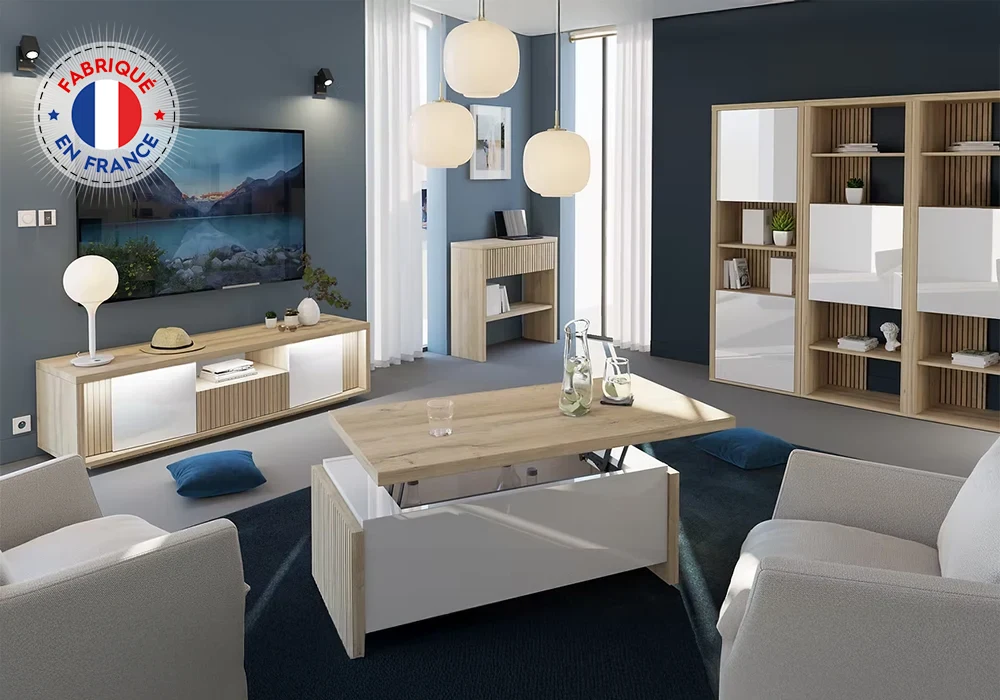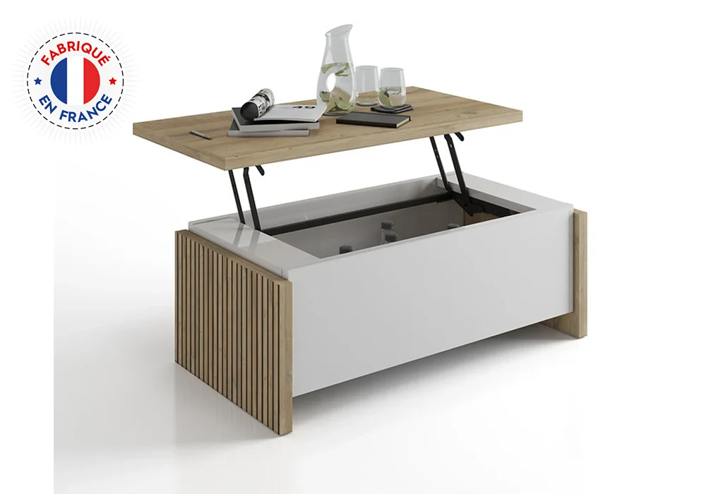 Table basse avec plateau relevable CASTEL — Élégance, fonctionnalité et fabrication française