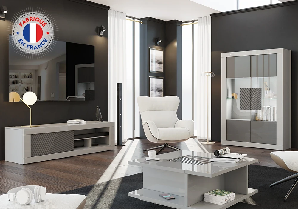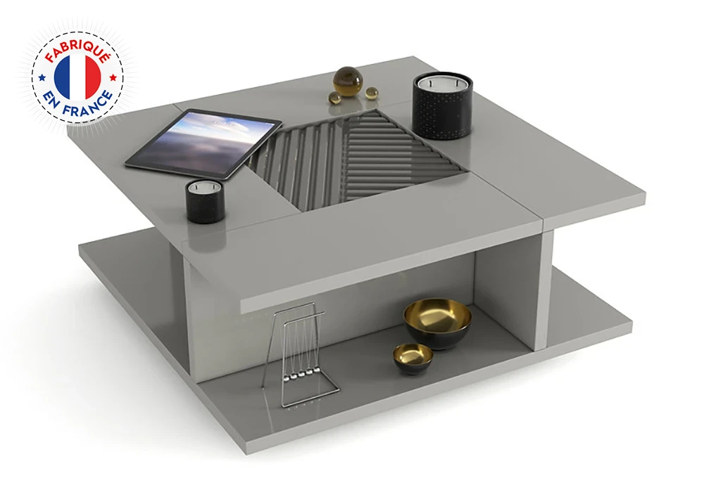 Découvrez la gamme JANE, une fusion parfaite entre élégance et modernité. Cette table basse, avec ses tons bi-ton laqués gris clair et gris foncé et son allure chic, est l’élément idéal pour sublimer votre salon.
