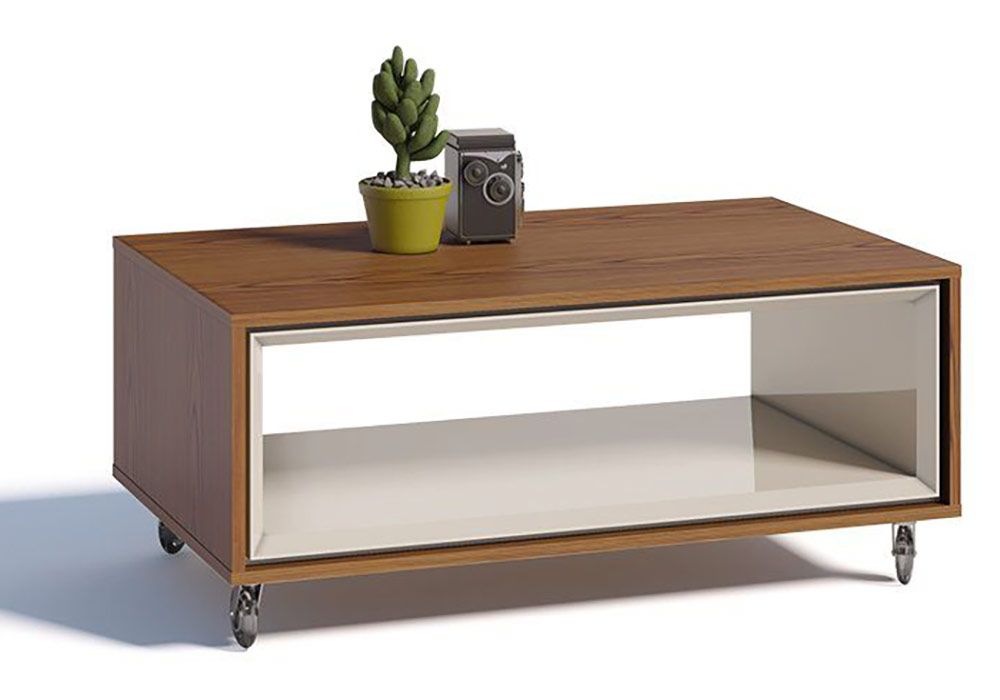 Cette table basse opéra de style moderne est composée de deux plateaux pour plus de rangements avec des roulettes. Autour de fauteuils et canapés cette table de salon sera trouver sa place.