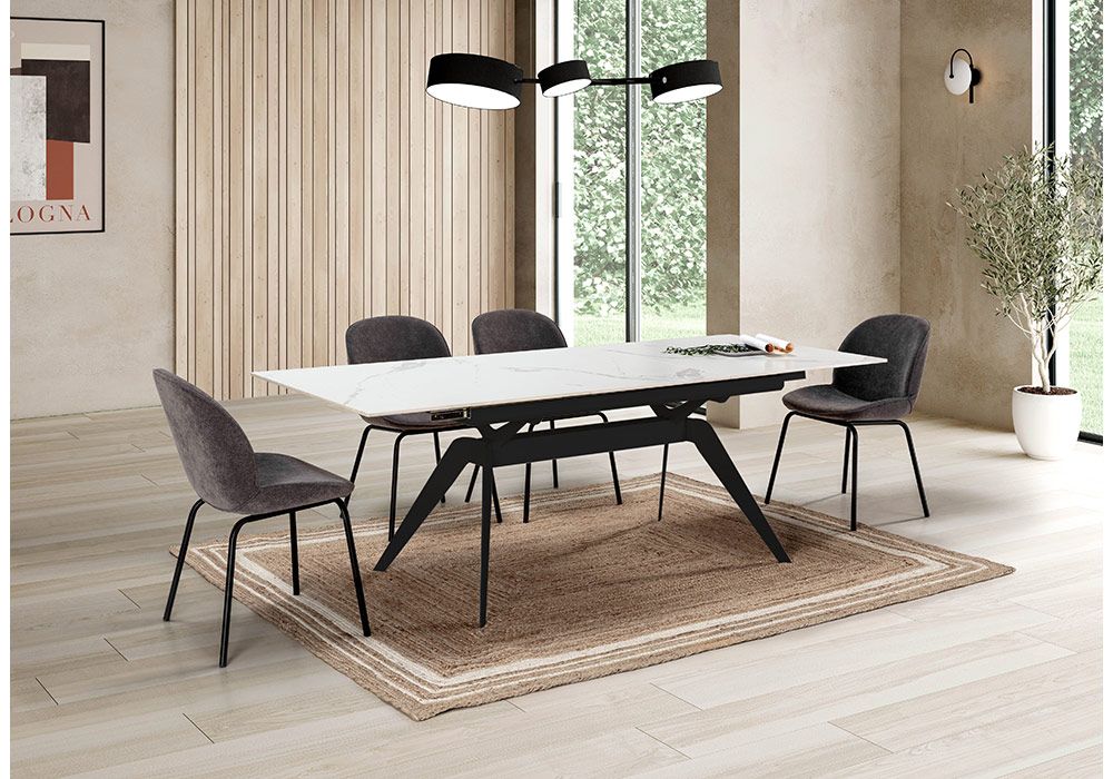 Découvrez la perfection du design moderne avec notre table rectangulaire en céramique Lula, couleur blanc marbre, avec allonge. Cette table est bien plus qu’un simple meuble, elle est le cœur de votre espace de vie, alliant élégance et fonctionnalité.